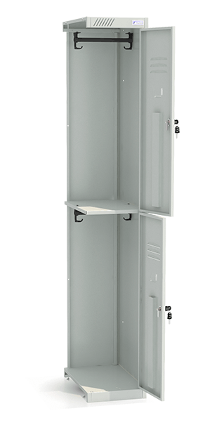 - В комплект шкафа ШРС-12, состоящего из двух ячеек, входят две перекладины для «плечиков», четыре одёжных крючка и два секретных замка.