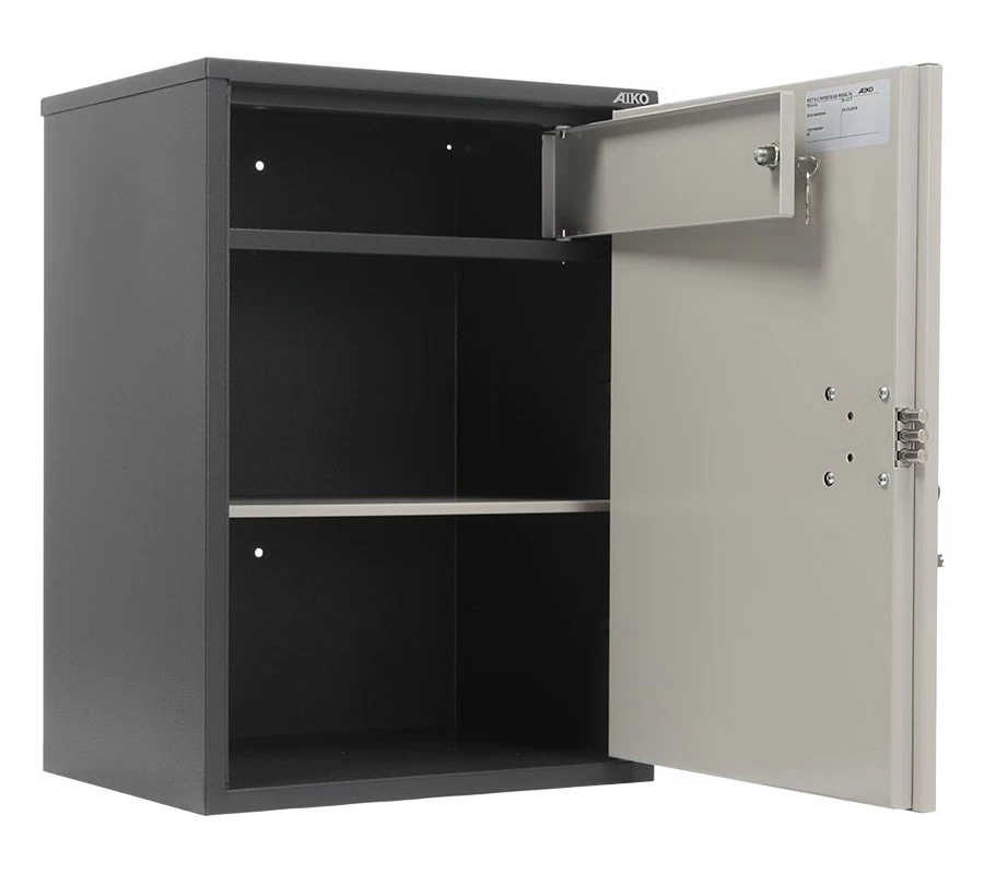- Шкаф Aiko SL-65Т – это прочное сварное изделие из стальных листов толщиной 1.2 мм. На дверь устанавливается трёхригельный ключевой замок «Практик» сувальдного типа.